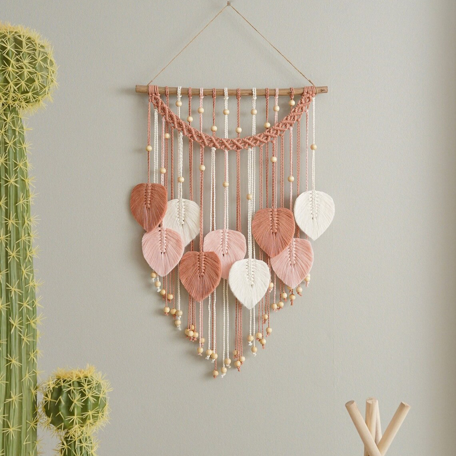 ボヘミアン風ロープ掛けタペストリー手作り編み木製ビーズ葉写真掛け装飾フリンジ壁面装飾対外貿易
