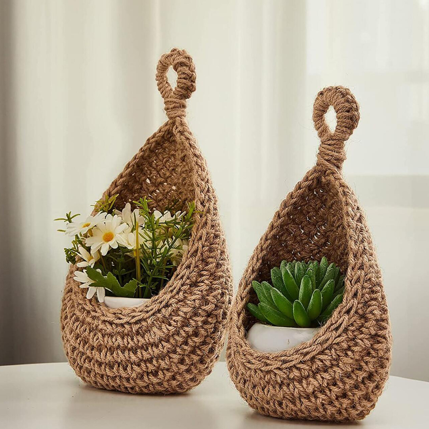 Ins編みタペストリー花籠北欧風手作り壁掛けボヘミアン植物吊り下げ蘭網兜飾り