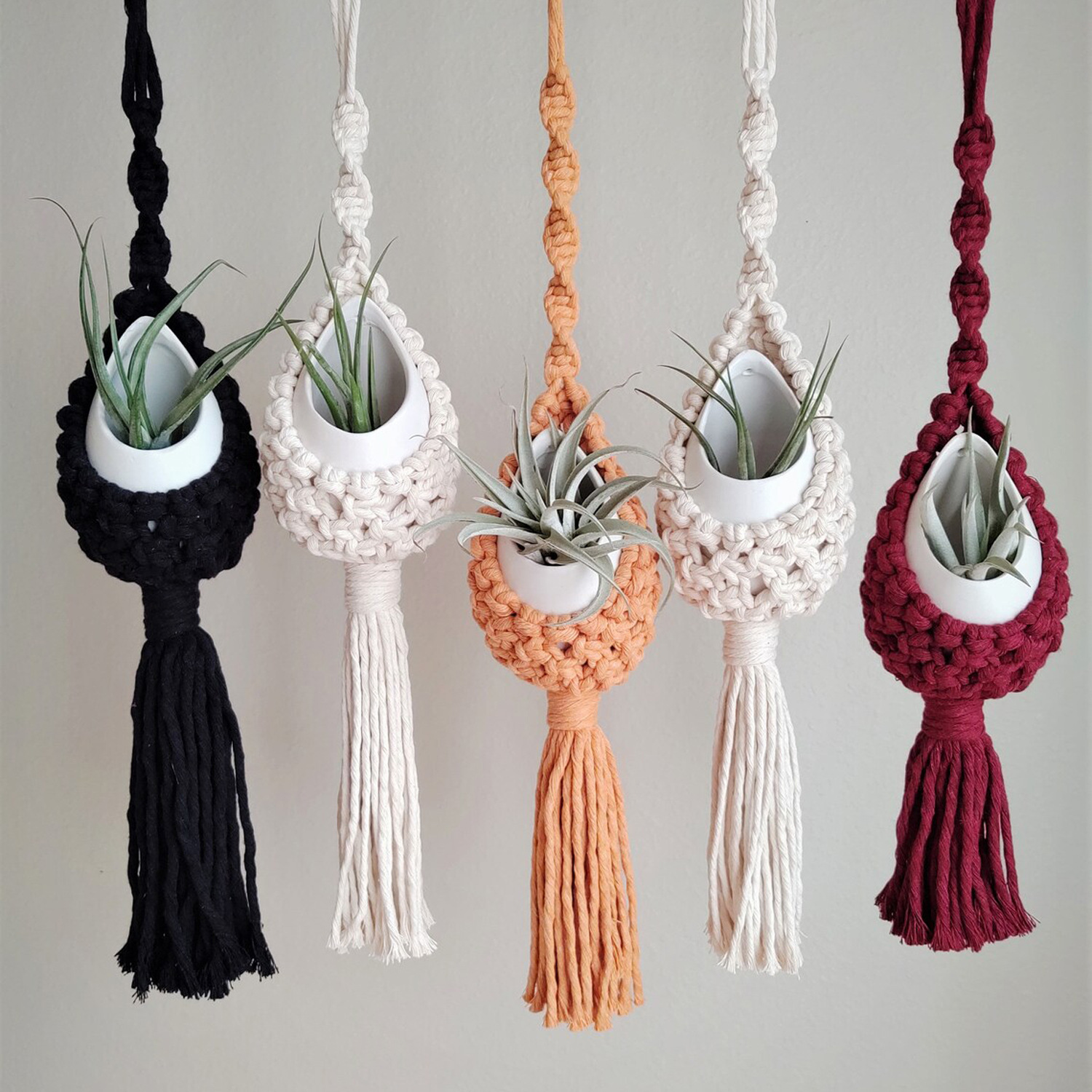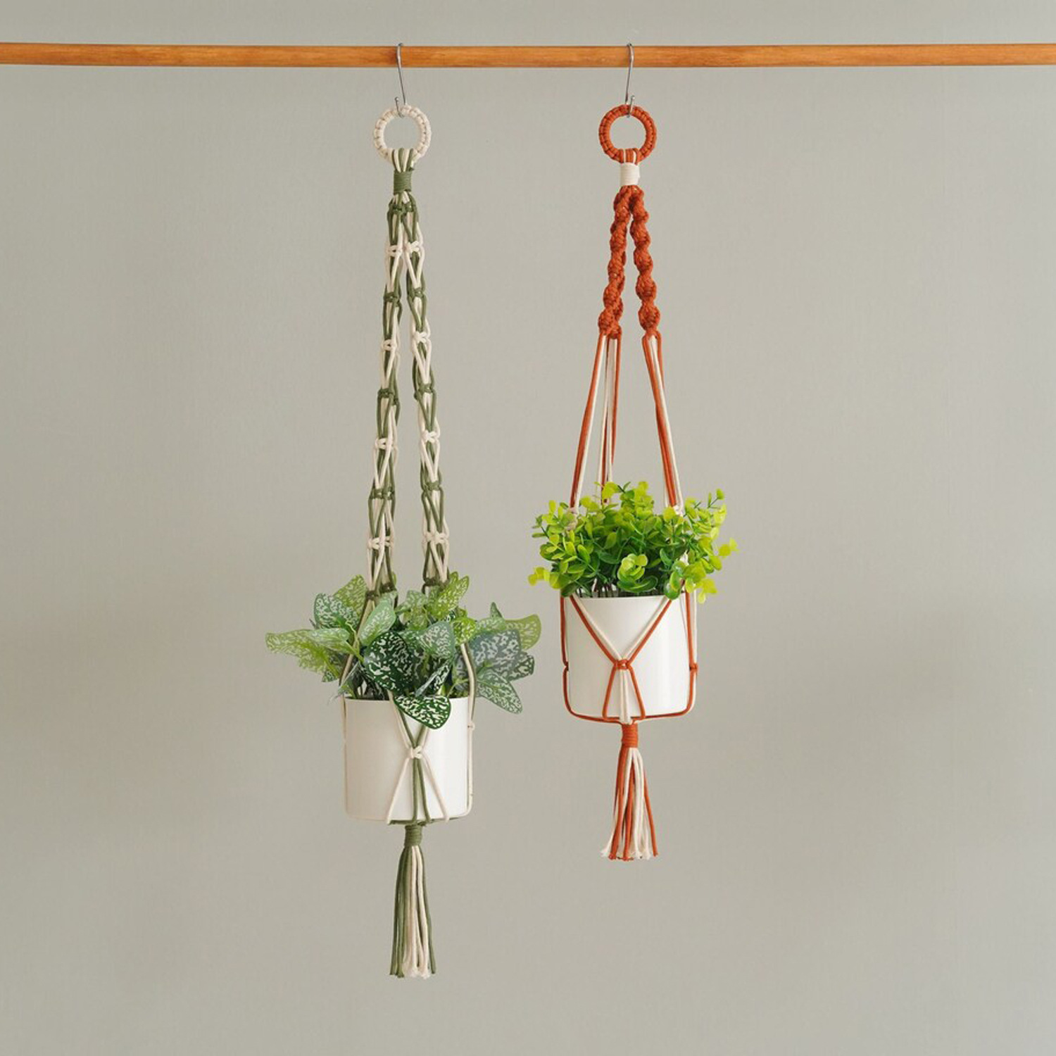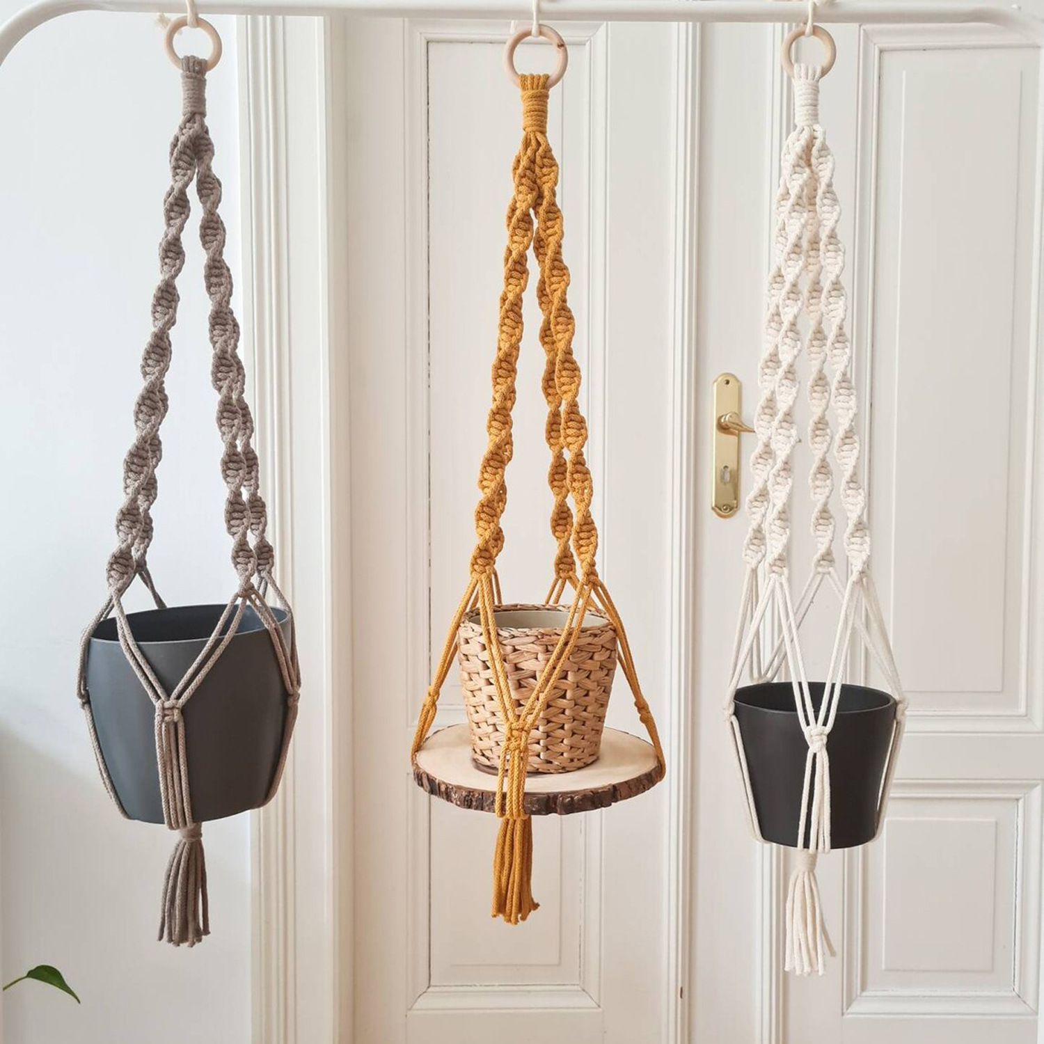 北欧手織り綿ロープ吊りバスケットネットポケット室内吊りミニ緑植装飾アイデア空気鳳梨花バスケット