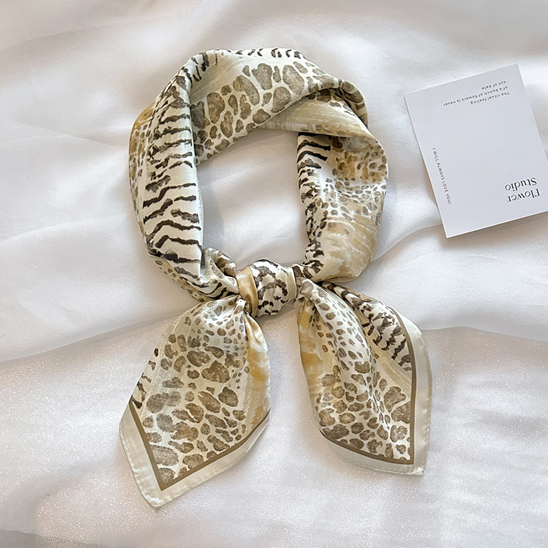 韓国系レトロ腰果花綿麻小方巾シルクタオル通気性襟巾春夏新ファッション高級感百合