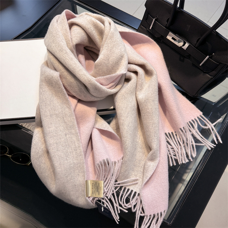 オーストラリア100% ウールクリップ花純色両面マフラー女性冬2024新作男女通用高級感プレゼント
