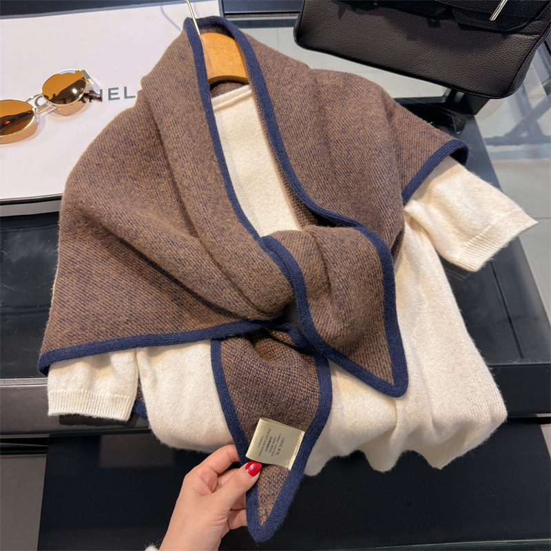 100% ウール三角マフラー高級感のあるニットストール女性秋冬保温ネックマフラー
