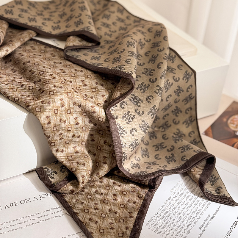 2024 早春の新スタイルの女性の首保護桑シルクスカーフ韓国スタイルメンズ春と秋スタイルカシューフラワーシルクスカーフ