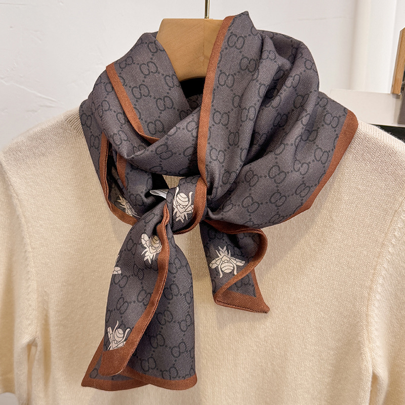 高級感両面二重模造シルクマフラー長条斜角マフラー