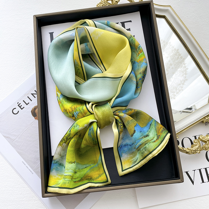 夏の青い緑のグラデーションの油絵の二重の绢糸のシルクのスカーフ