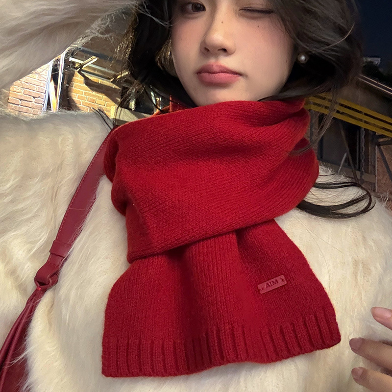 純粋なウールのマフラーの女性の冬の純色の百合2024の新型の韓国の小さいマフラーの男性のカップル