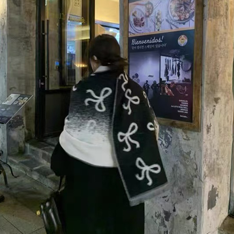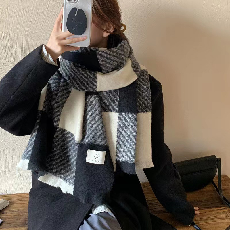 新型マフラー女性冬2024新型韓国版百合学生白黒格子ストールは保温マフラーを厚くした