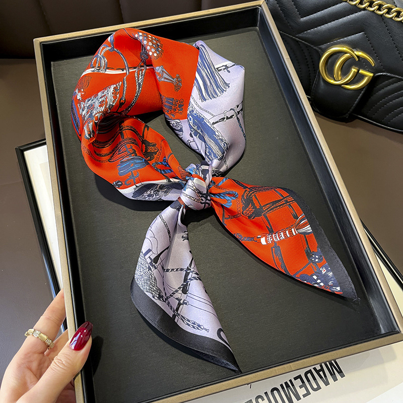 韓国版の清新で上品な花のスカーフの女性の春秋装飾の長いタイプのスカーフの二重のサテンは赤ちゃんのスカーフを縛ります。