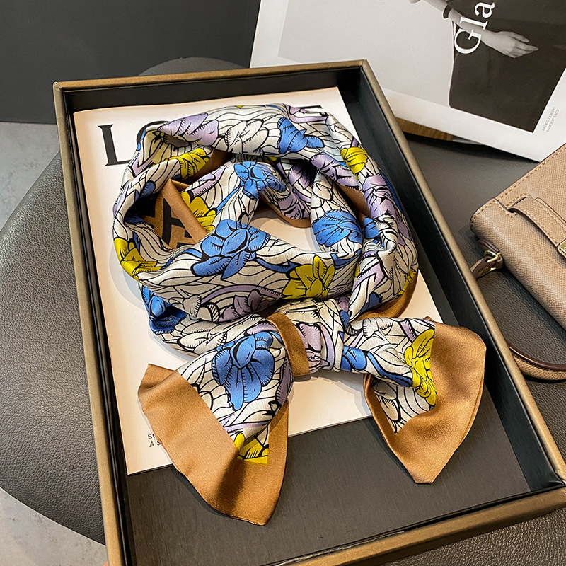 2023春夏の新型優雅な花卉シミュレーションシルクサテンのシルクタオル90cm巻きのスカーフの日焼け止めストール
