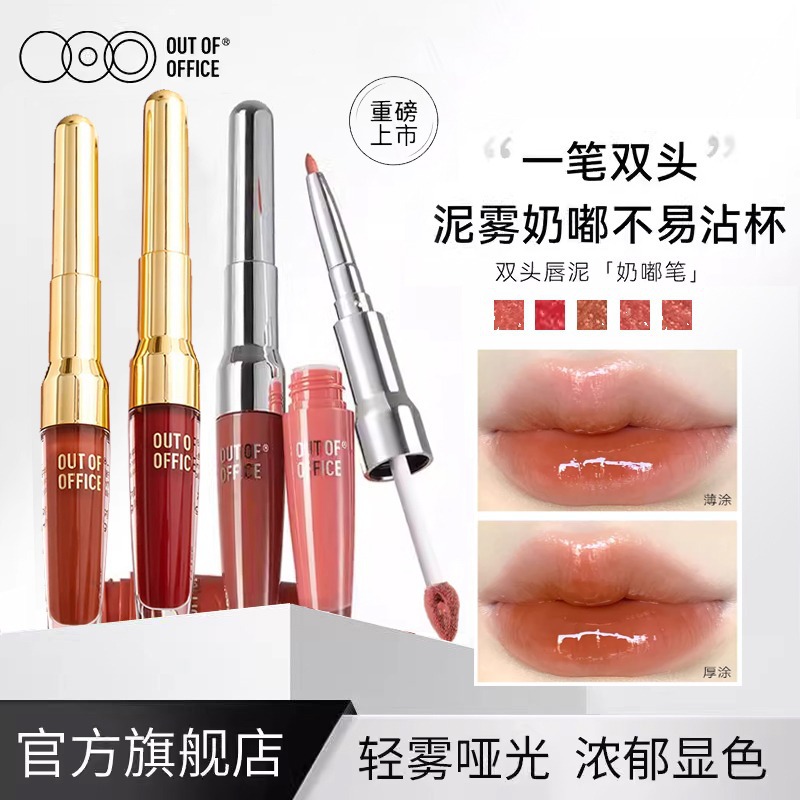 OUT OF OFFICEよ野OOO双頭繊維彫刻精華唇釉水筆唇蜜水光鏡面女性新人