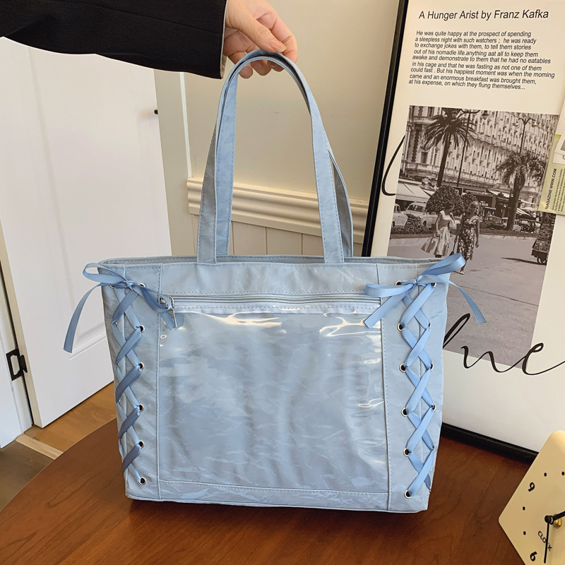 美しいカジュアルシンプルで甘いショルダーバッグ大容量手提げトートバッグ純色透明大衆デザイン脇下バッグ