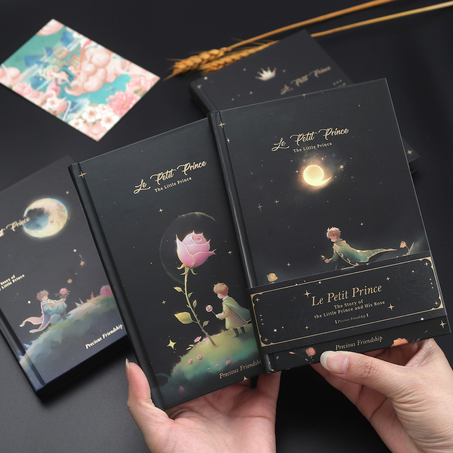 見栄えの良いオールブラックの紙、白紙のインナーページ、クリエイティブな星の王子さまの日記、ノート、絵画落書きノート