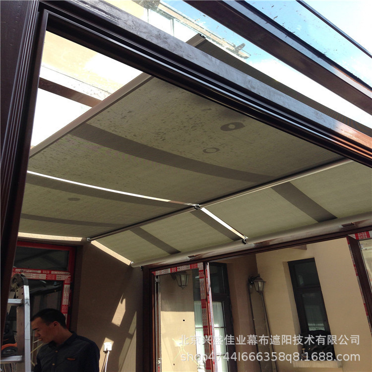 塘沽陽光房室外天幕蓬-ガラス室断熱カーテン-採光天井電気天幕カーテン屋外シェードカーテン