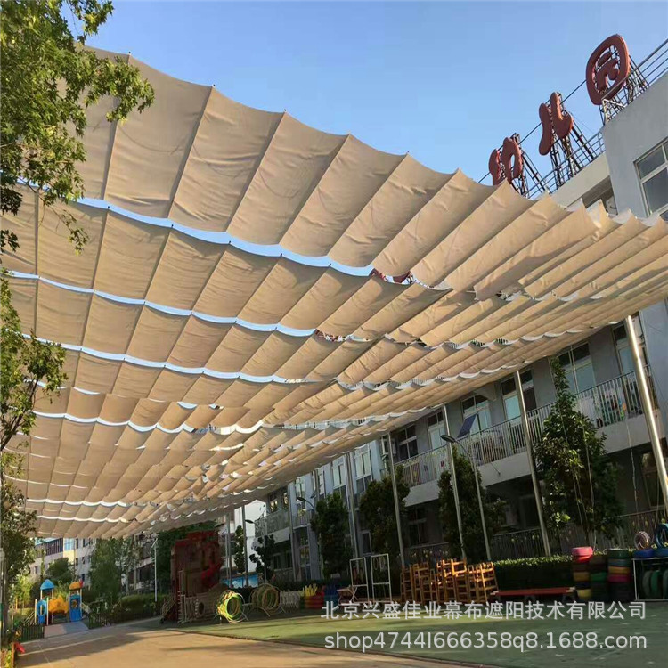 大城幼稚園屋外日除け天井カーテンホテル日光屋根日よけカーテン屋外水泳館電動日よけカーテン