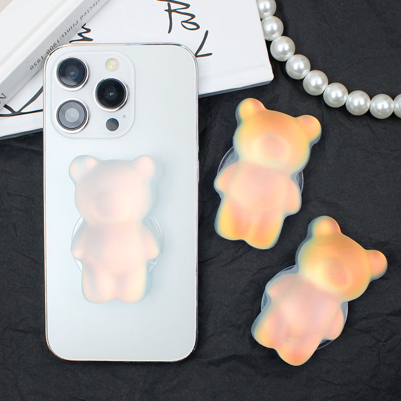 光り輝くレーザー携帯電話のサポートフレームの熊の立体透明なエアバッグのスタンドのゴムのミニスタンドの新型は簡単です。