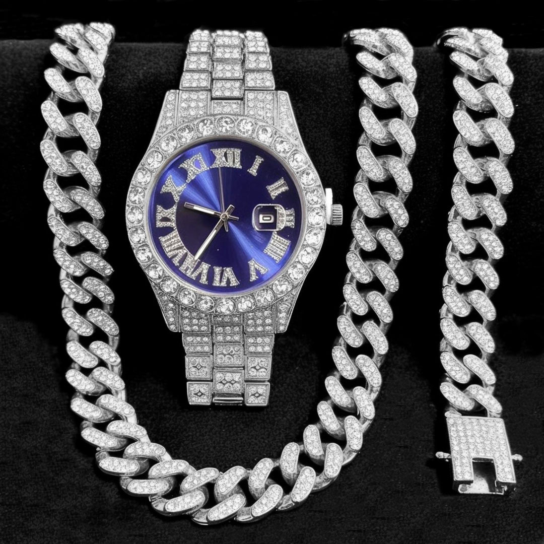 ヒップホップウォッチ+ブレスレットストラップネックレスセット ダイヤモンド付きヒップホップウォッチセット WATCH