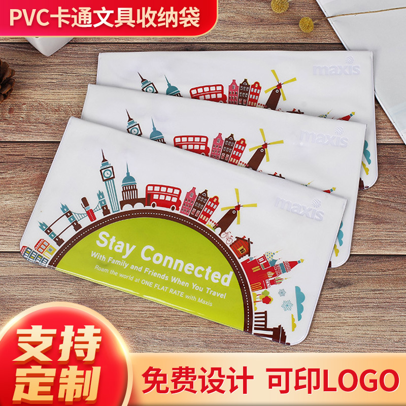 Pvc漫画ボタン式文房具収納袋創意学習用品収納チャック袋密封袋収納袋