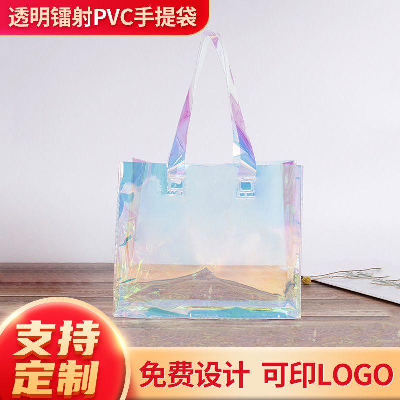 透明レーザーpvc手提げ袋tpuプラスチックプレゼントショッピング手提げ袋化粧品袋レーザー手提げ袋