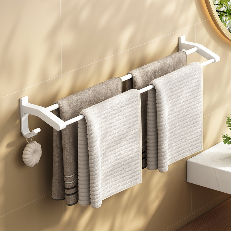 タオル掛け穴なしスペースアルミトイレ収納棚浴室壁掛け式白色二重棒タオル棒