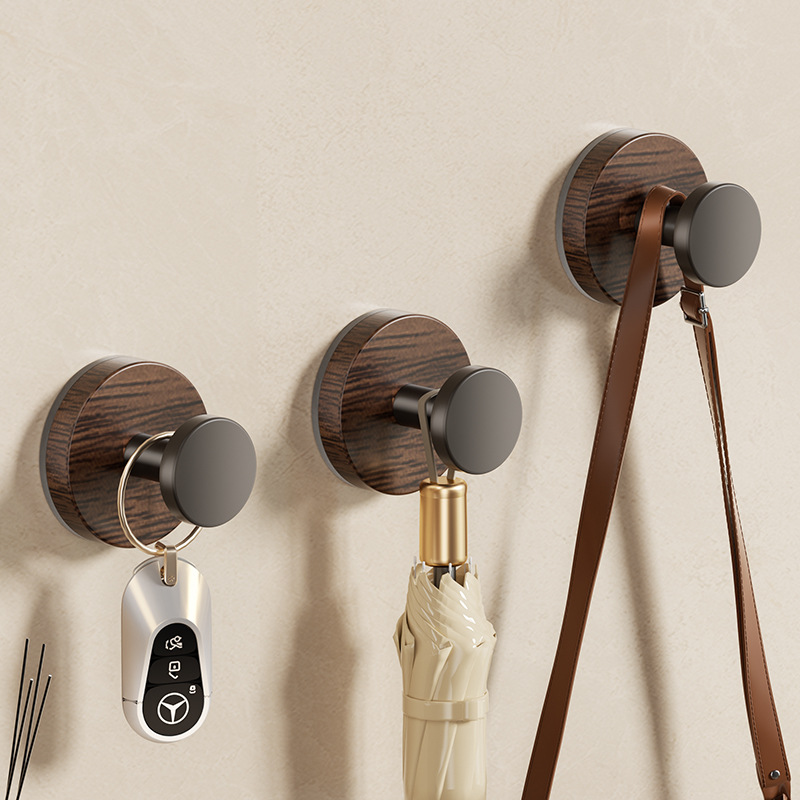 強力な吸盤キッチンとバスルームのシングルフック牧歌的なスタイルのクルミ木目バスルームフックパンチフリー壁掛けコートフック