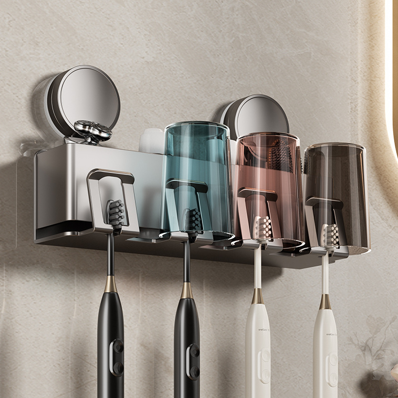 スペースアルミ浴室壁電動歯ブラシホルダーうがいコップ収納セット壁掛け真空吸盤歯ブラシホルダー