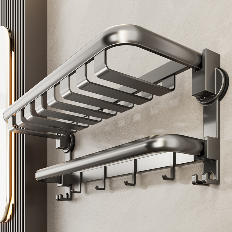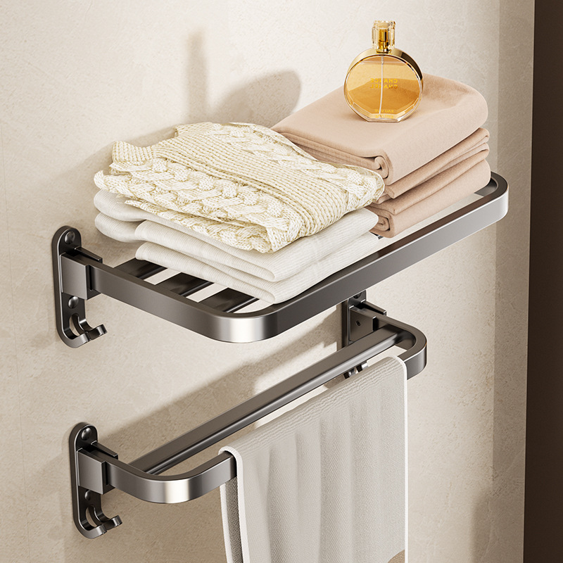 トイレ穴なしタオル掛けトイレ壁折りたたみバスタオル収納棚ガングレー壁掛けバスルームストラップ