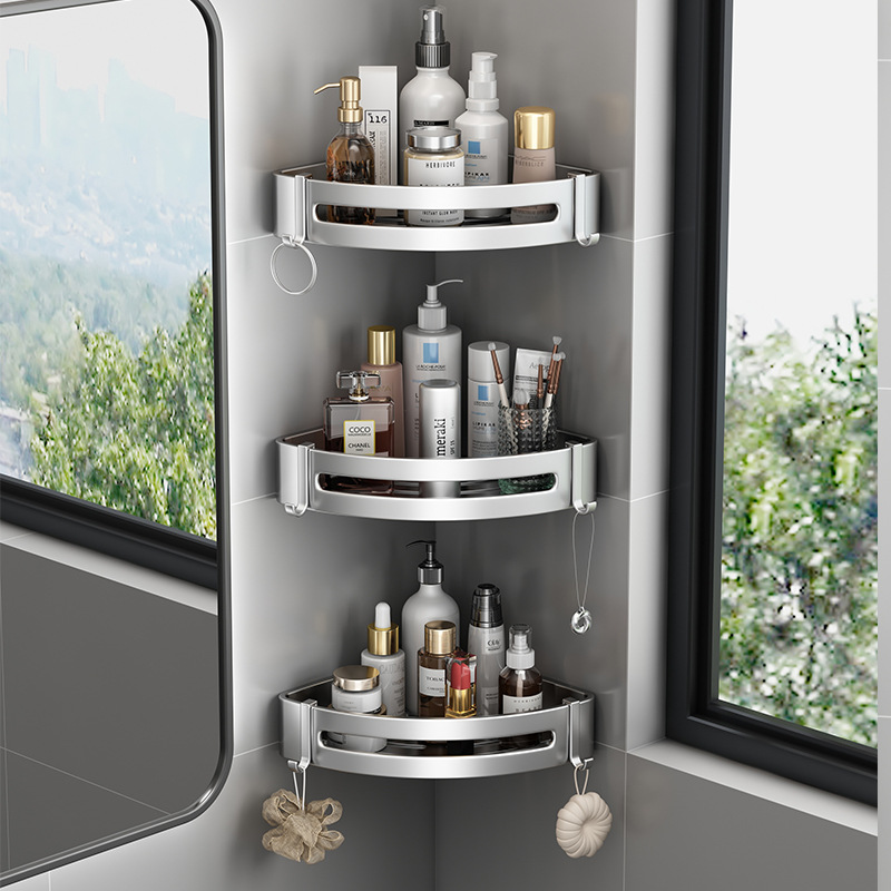 浴室穴なし収納棚トイレ洗面台壁掛け棚宇宙アルミ銀色コーナー棚