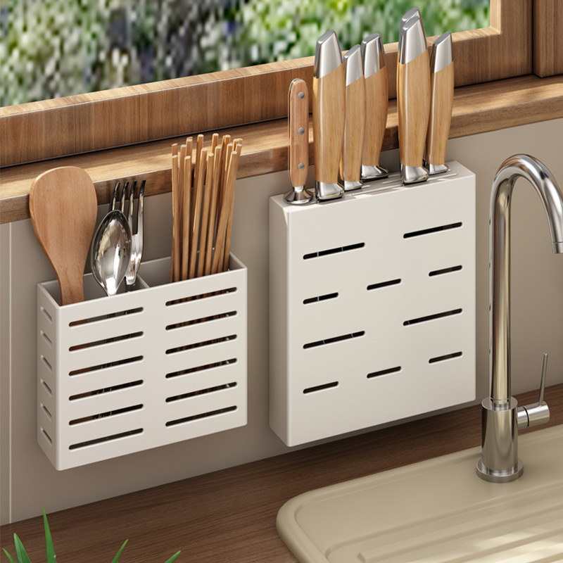 ホワイトキッチンシェルフ雑巾ポールフック多機能収納穴なしナイフホルダー箸立て一体キッチンシェルフ