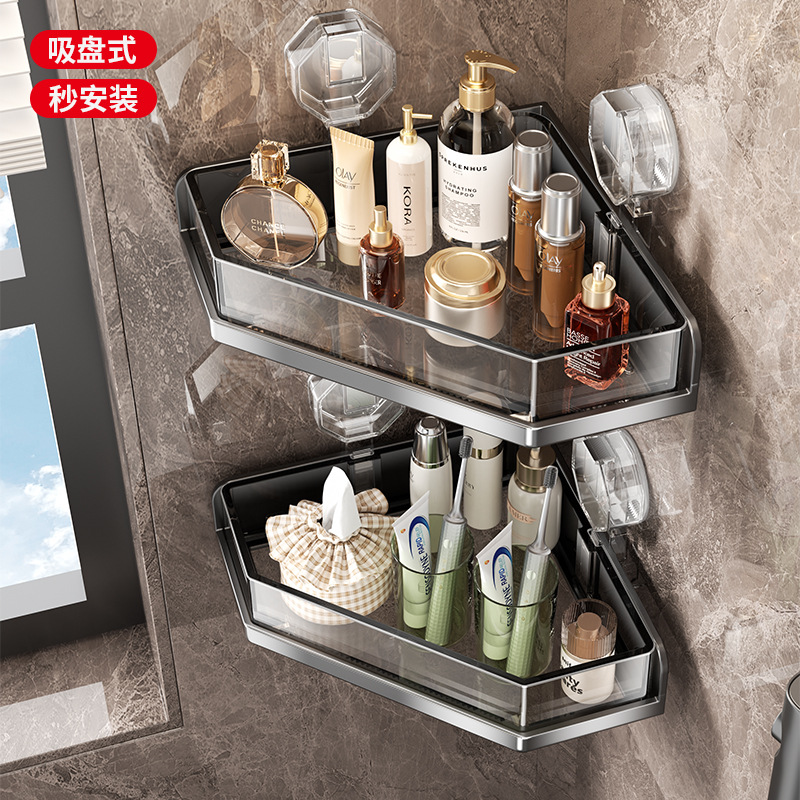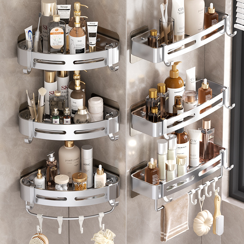 パンチングなしバスルームスペースアルミハンガーバスルーム壁コーナー収納ラック強力な吸盤バスルーム収納ラック