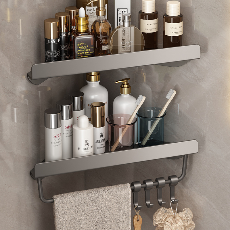 トイレの物置棚は穴を開けないで壁掛けのタオル棚の宇宙アルミニウムの白い洗面台の浴室の物置棚の卸売りをします。