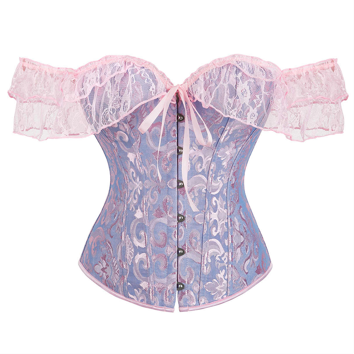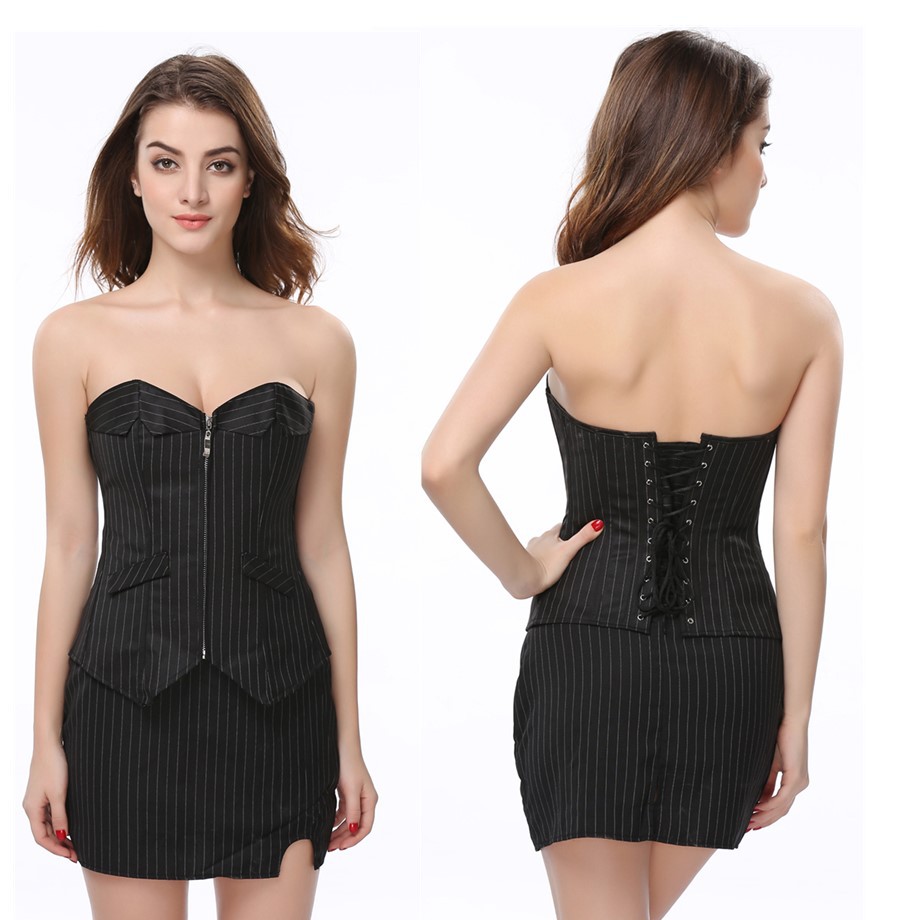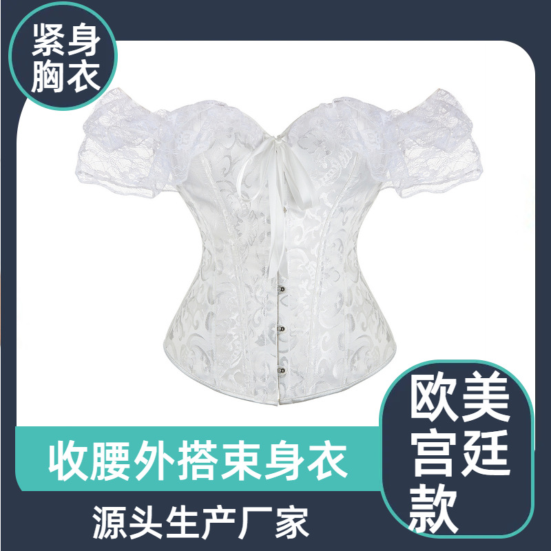 欧米の新型の女性は肩ベルトの茶色の宮廷の上着を持って腰の美しい体の服を収めて外に腰の復古の胸の服を着ます。