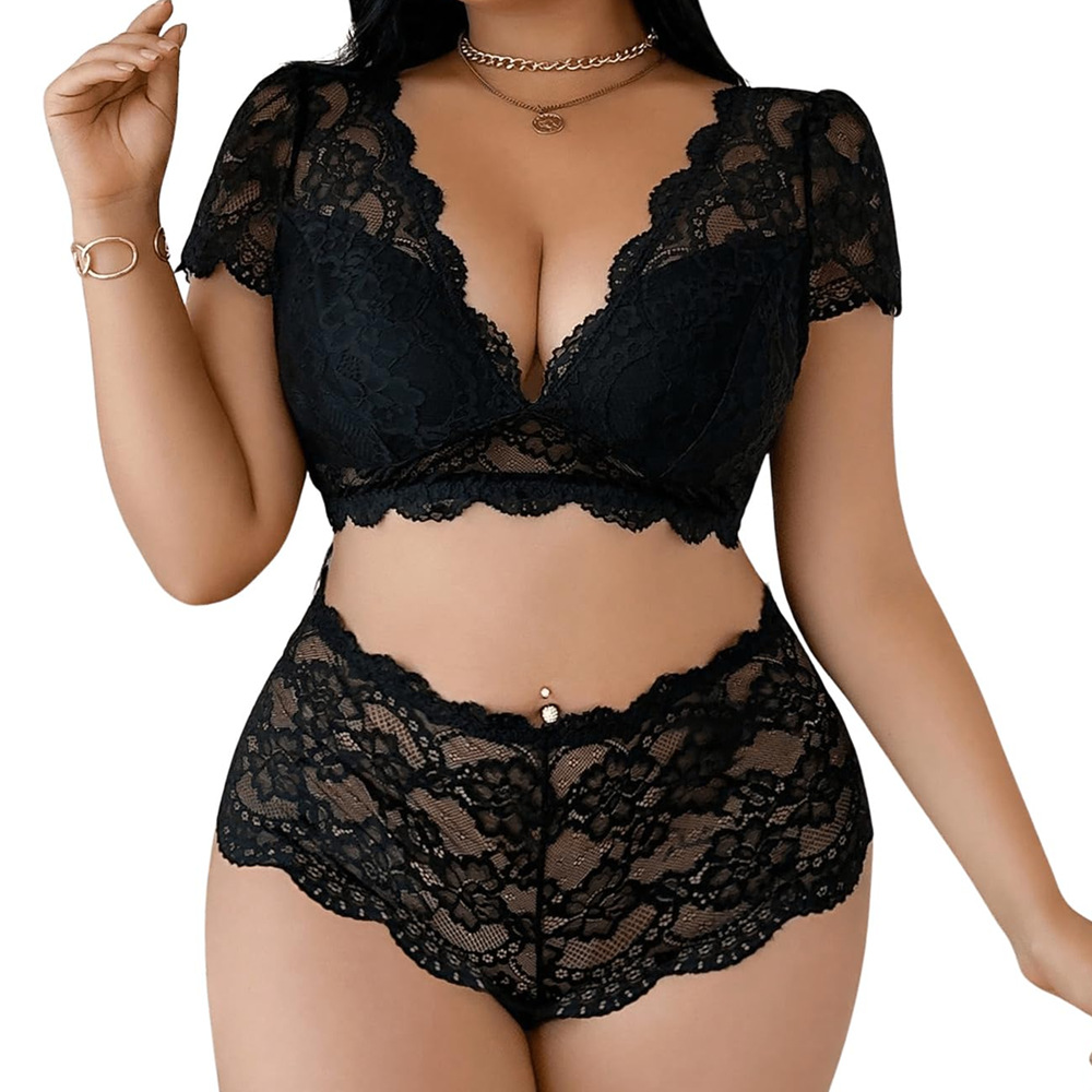 2024欧米の新型セクシースーツの大きいサイズのレースの背中の薄いタイプの趣味の下着の太っているMM透視の家のパジャマ