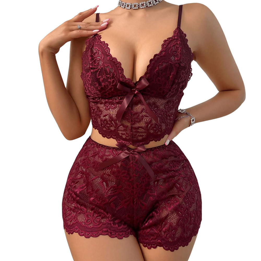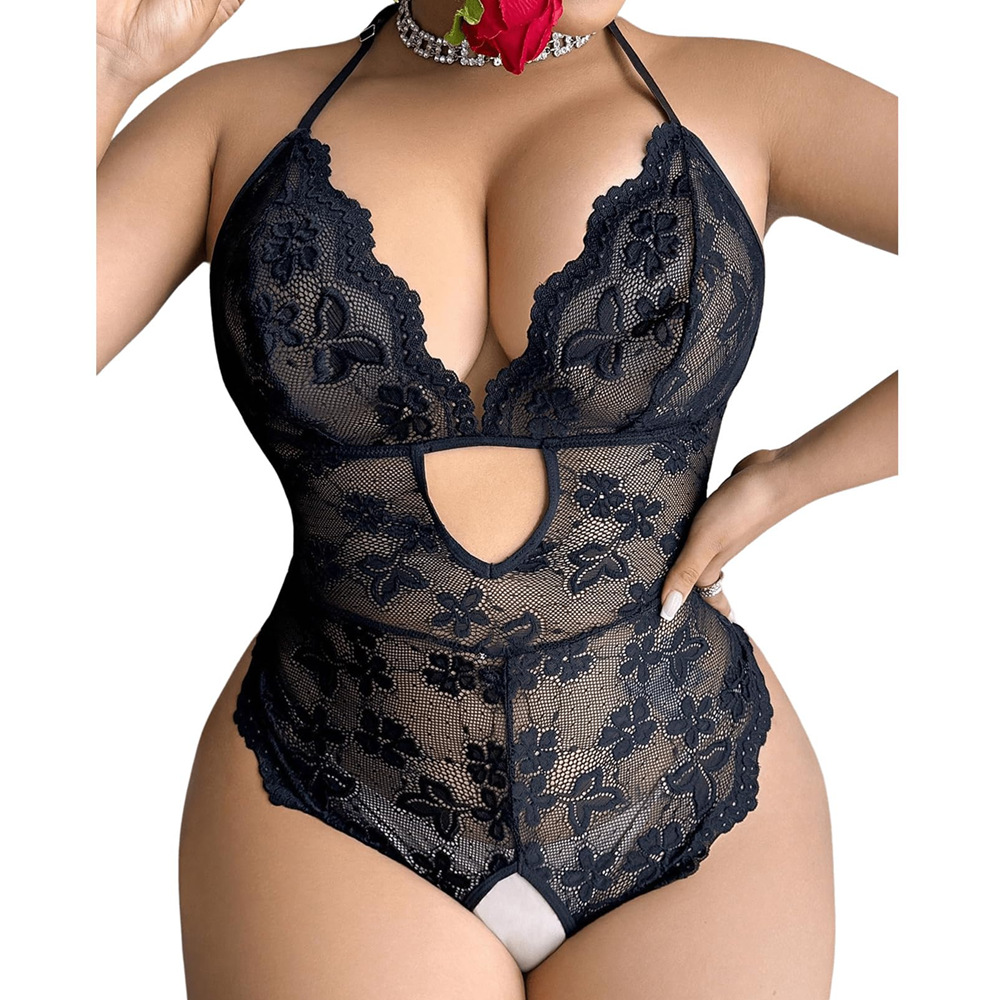 外国貿易クロスボーダー電気商商品ソース趣味下着レース透かし彫りディープvオールインワンオープンホームウェアパジャマ