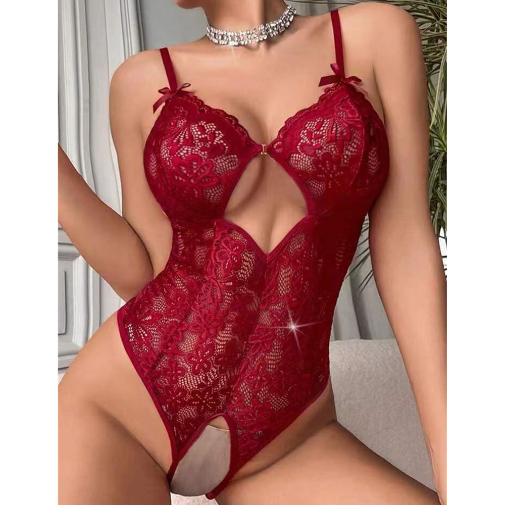 メーカーの商品の供給源は欧米の情緒の下着の潮流のレースの修身のワンピースのバレンタインデーの新型の深いvは首のパジャマを掛けます。