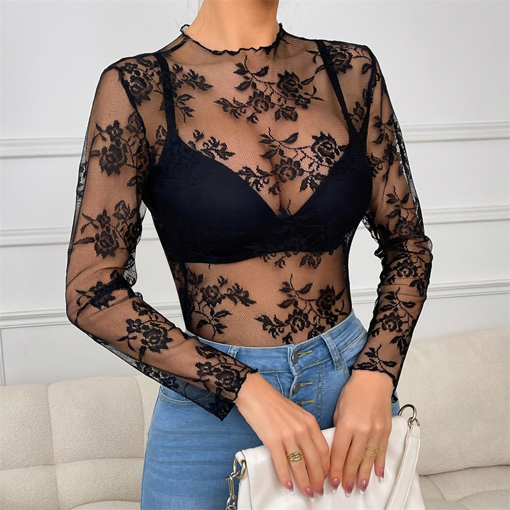 INS欧米の越境商品のセクシーレースの透視ギャルの下着の透かし彫りのしわの辺の情緒の上着の1枚のカバー
