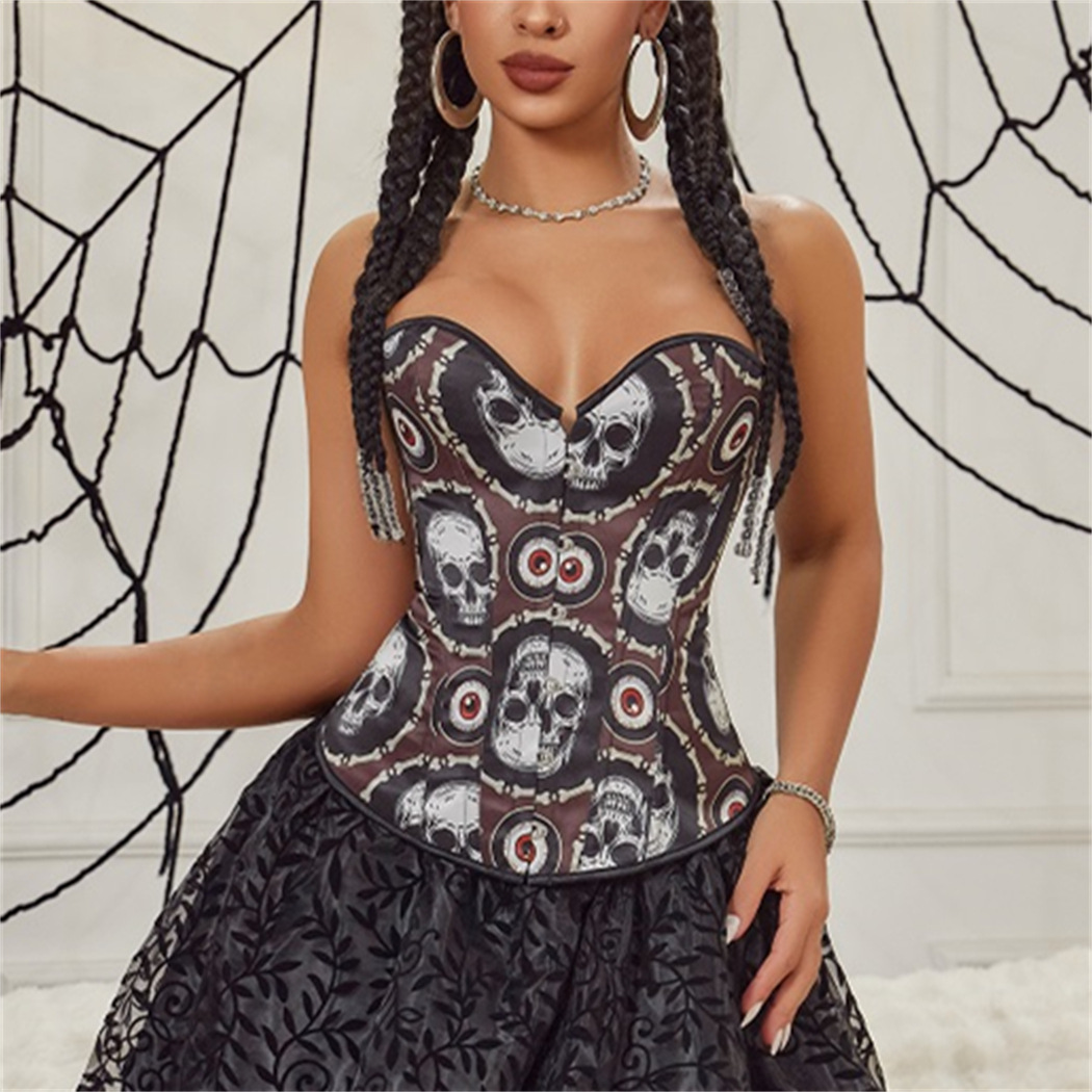外国貿易の国境を越えた電気商の供給源ヨーロッパの女性はレトロな魚の骨のコルセットのハロウィンのショーの服装を身に着けます。