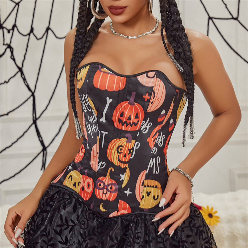 Corset top外国貿易万聖のテーマの舞踏会の服は腹を閉じて肩のベルトがない身の服を収めて腰のコルセットの女性の金を収めます。