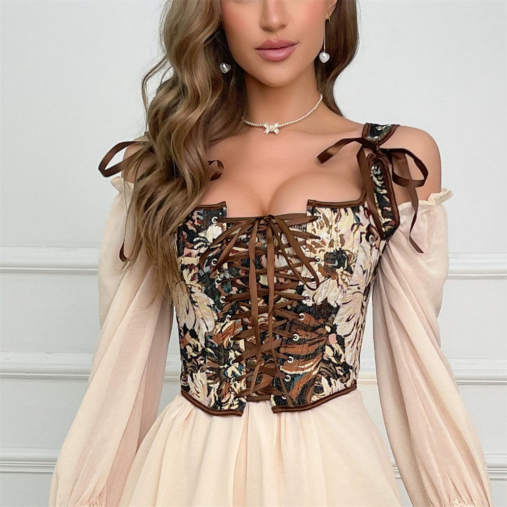 アマゾン速売通国境を越えたコーヒー色のリボンストラップの上着の前に腰を収めて宮廷のボディスーツを結ぶことができる