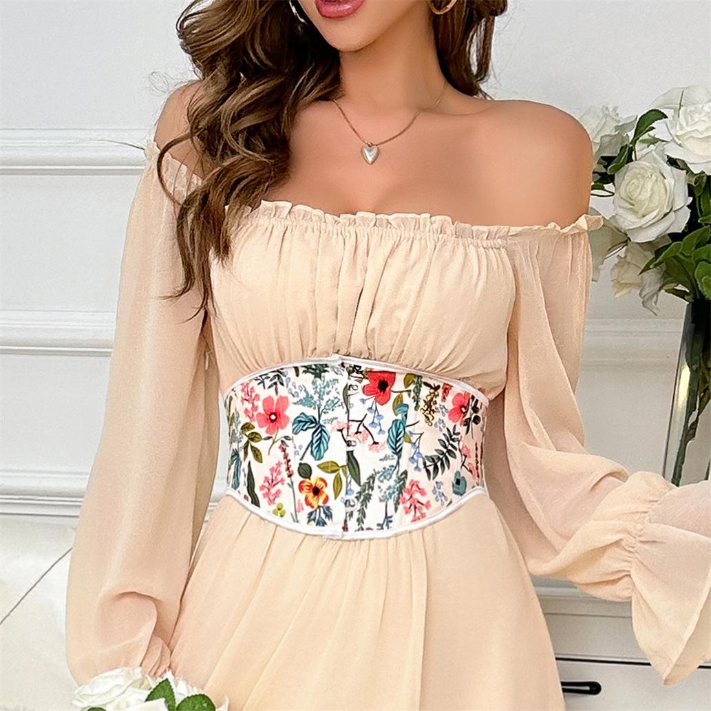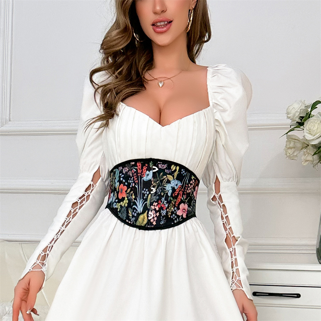 ショートタイプのストラップ付きのウエストシールのプリントの色丁の布地は腰の女性を束ねて身の服を作って外に身を修めて身の服の現物の卸売りを縛ります。