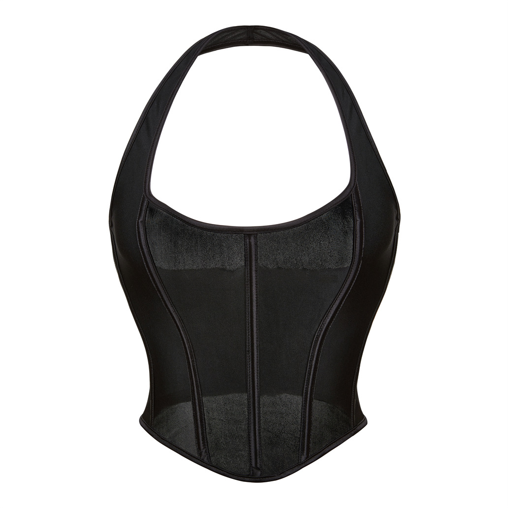 色丁の短いタイプの首掛け式の肩ベルトを着て、宮廷のシェイプアップの服を着て、腰を締めてベストの女性を集めます。