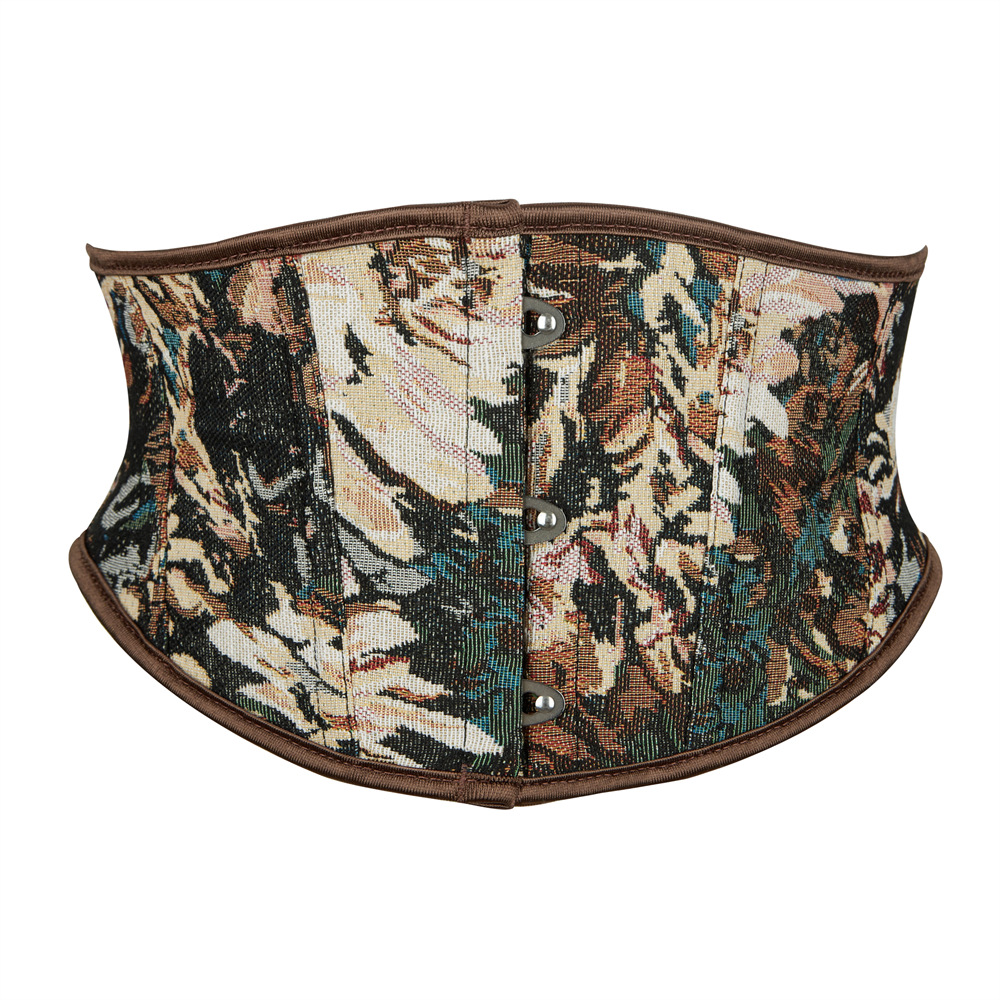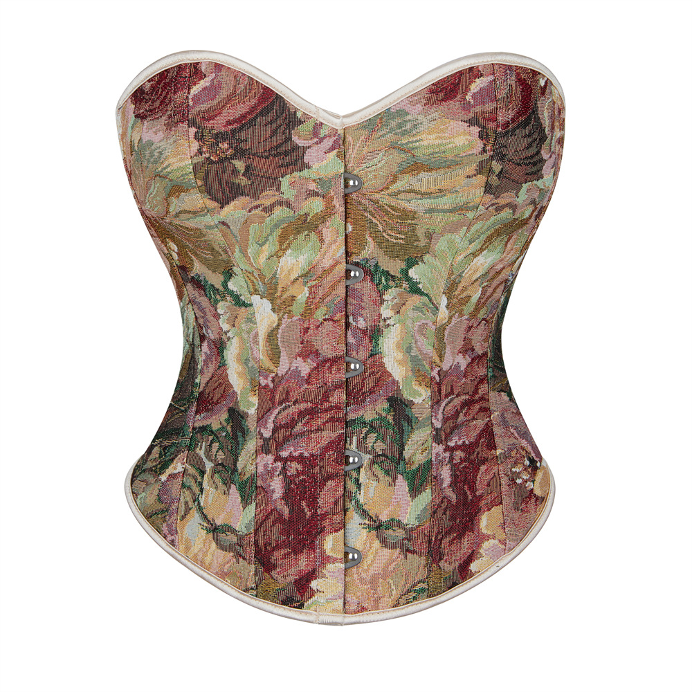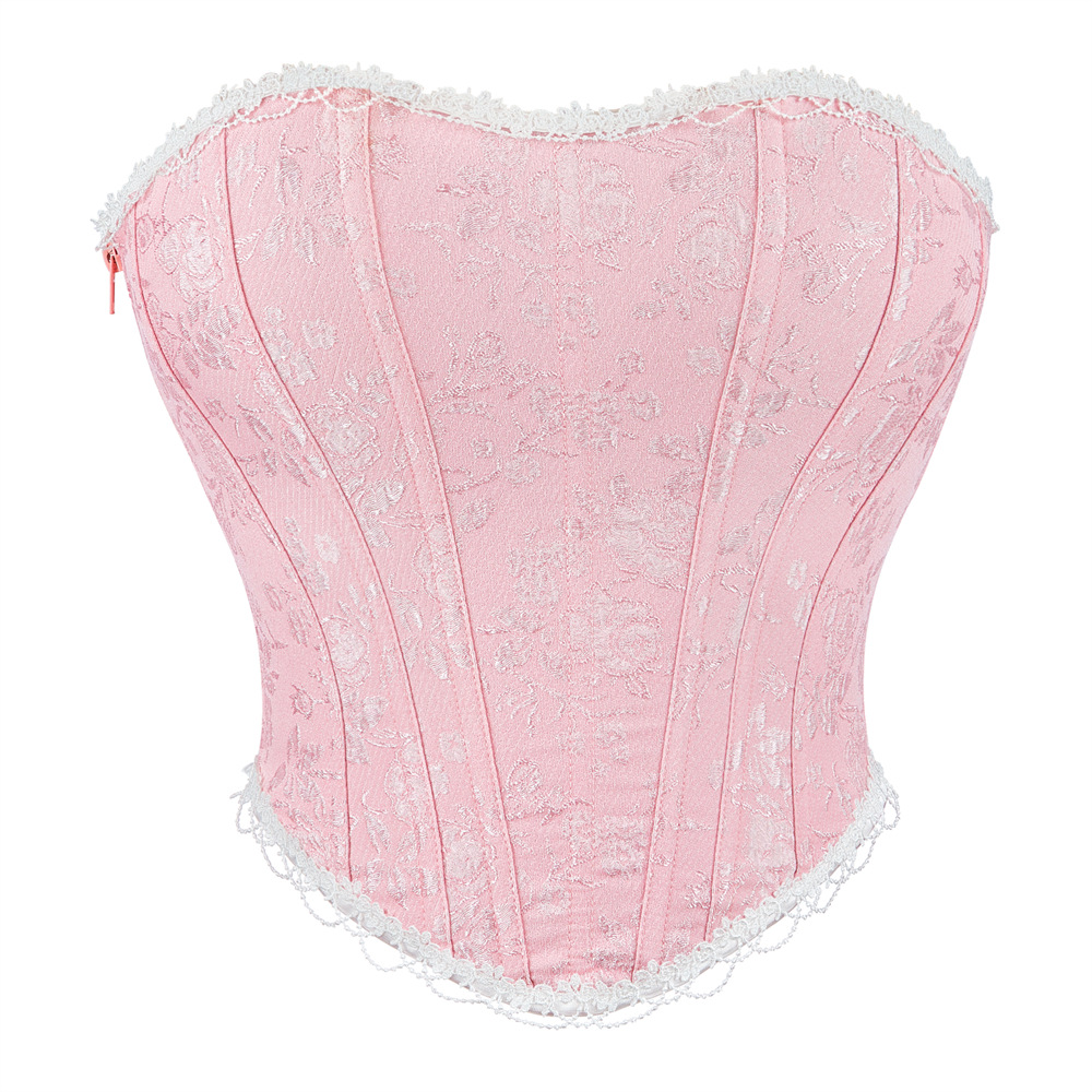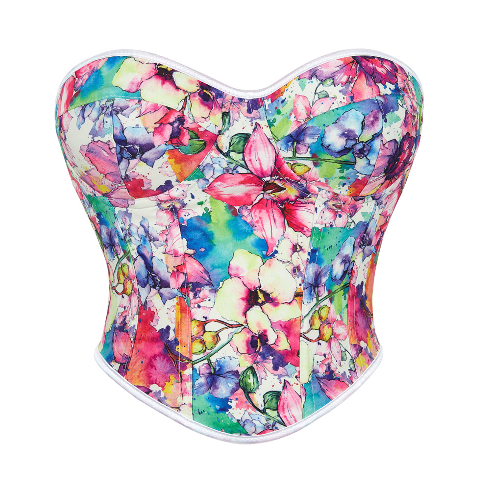 2024欧米の宮廷のレトロなボディスーツは肩ベルトのセクシーなシェイプアップの上着の黒色の植物のプリントは腰の骨の服を収めます。