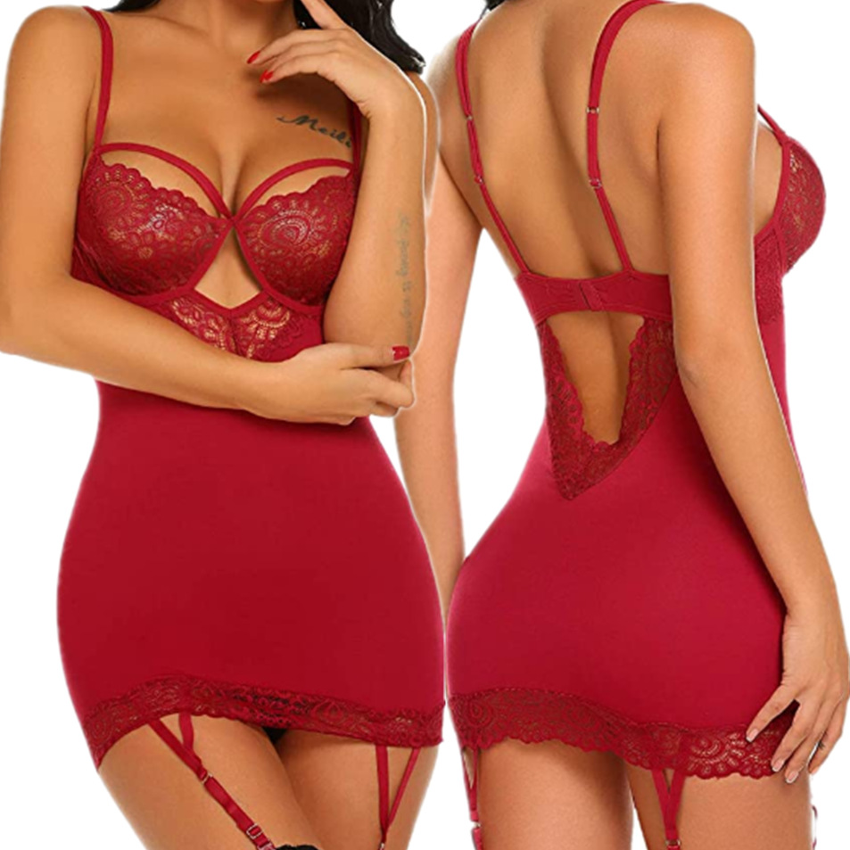欧米のセクシーな趣味の下着のレースの透かし彫りの後で首を掛けて寝ますスカートの女性の弾力性の大きいサイズの部屋の服のパジャマ