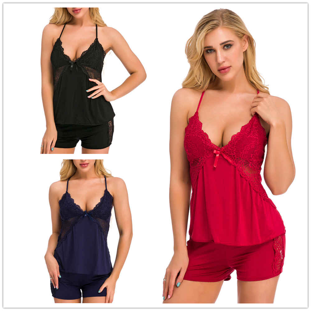 欧米の国境を越えた趣味下着女性のセクシーパジャマ夏の薄いストラップ半ズボンの2セットの家庭服