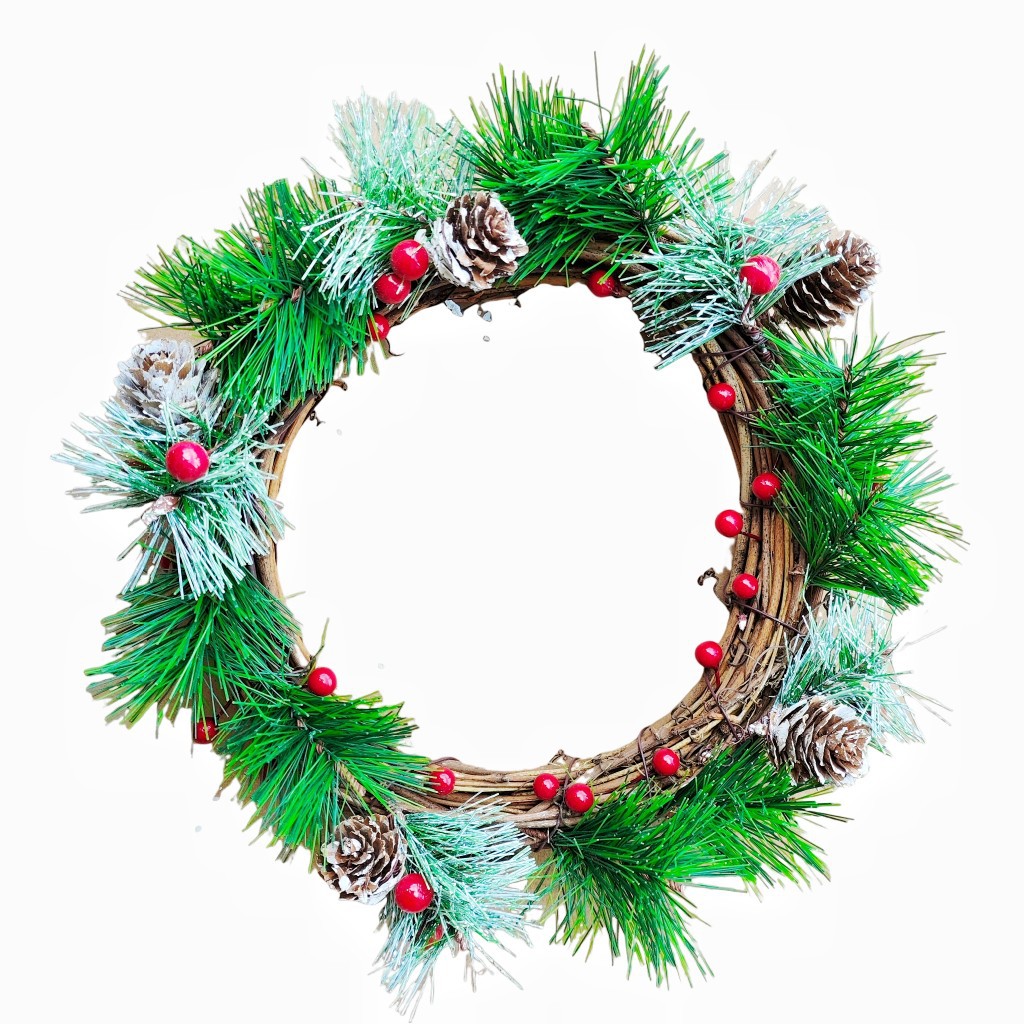 25CM松针赤果籐リングクリスマス饰り籐ペンダントイベントプレゼントプレゼントローソク足饰りベース置物