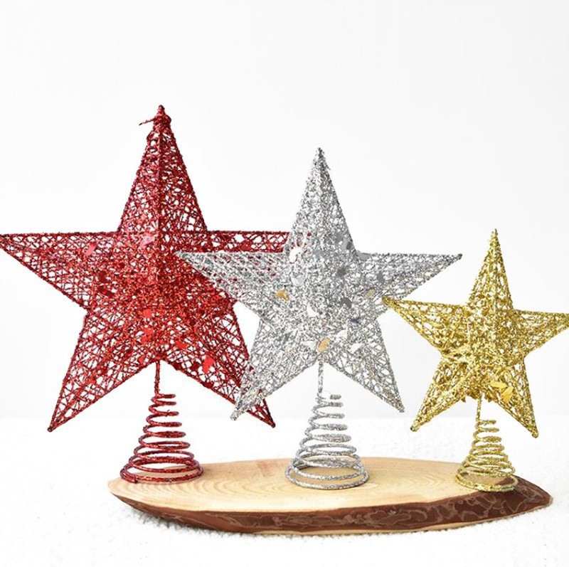 クロスボーダー卸売りクリスマス五角星鉄芸装飾品樹頂星亮片立式クリスマス装飾品置物