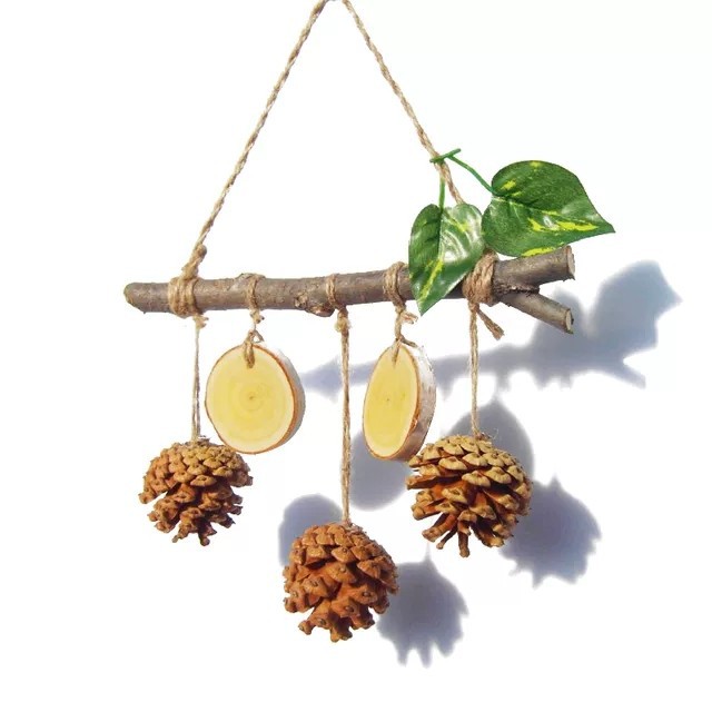 原木クリスマス松果ストラップ壁飾り幼稚園環創ストラップホーム民宿レストラン森系レトロ装飾品