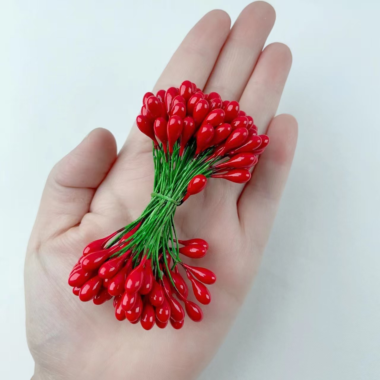 5 ミリメートル石膏ビーズ双頭小さな赤い果実クリスマス工芸品手作り DIY 材料ワイヤーロッド模擬花アクセサリー