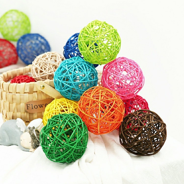 5cm天然籐编みペットおもちゃボールカラー祭りストラップ香薫干枝白籐ボール干枝生け花カラーボール