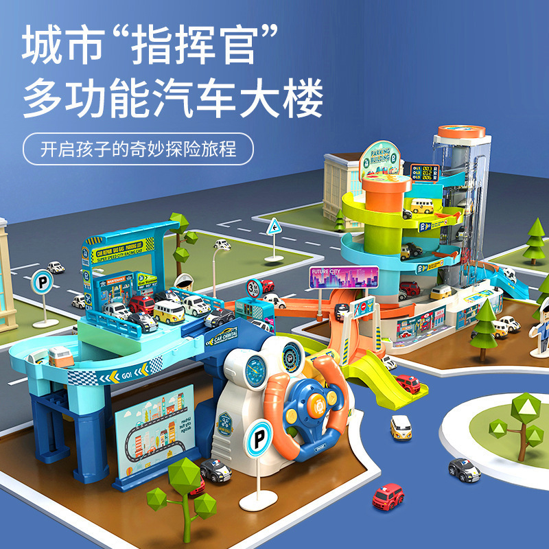 自動車の関門を突破する大冒険の軌道車のおもちゃの電気の小さい自動車の駐車場の都市のシーンの子供の益智のおもちゃ