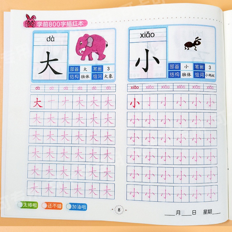 学前大クラス800字練習本幼稚園3-4-6歳の字帖小学生1年生の幼いつながりが赤くなった